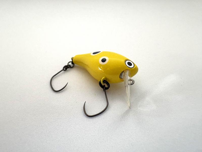 ラインアイの下にウェイトを張って、アジャスト。リアフックにバイトを集中させる型になっています。